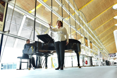 El acto de presentación de este nuevo proyecto que une a Aena con la música tuvo lugar el 11 de diciembre en la zona de embarque de la Terminal T4, en donde se pudo disfrutar de la representación de cuatro arias de la ópera Turandot, en escena actualmente en el Teatro Real, a cargo del tenor David Butt y la soprano Yolanda Patricia Auyanet.