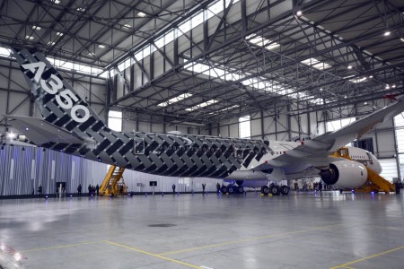 El avión que hemos podido ver es el msn002, el que lleva su sección trasera decorada como si fuese fibra de carbono, que es el primero con cabina de pasaje, Pronto se unirá a él el quinto y último avión de desarrollo que también contará con cabina de pasaje.