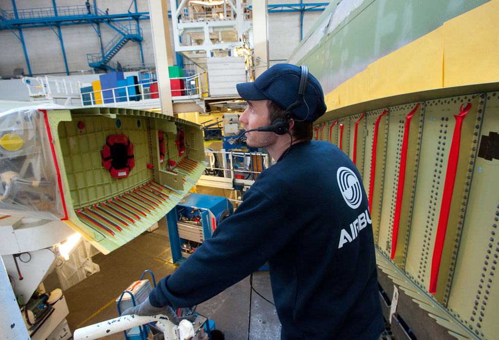 En la factoría de Airbus en Saint Nazaire (Francia) se está terminando el fuselaje delantero del primer Airbus A350 XWB que entrará en la cadena de montaje final, la célula de ensayos estáticos.